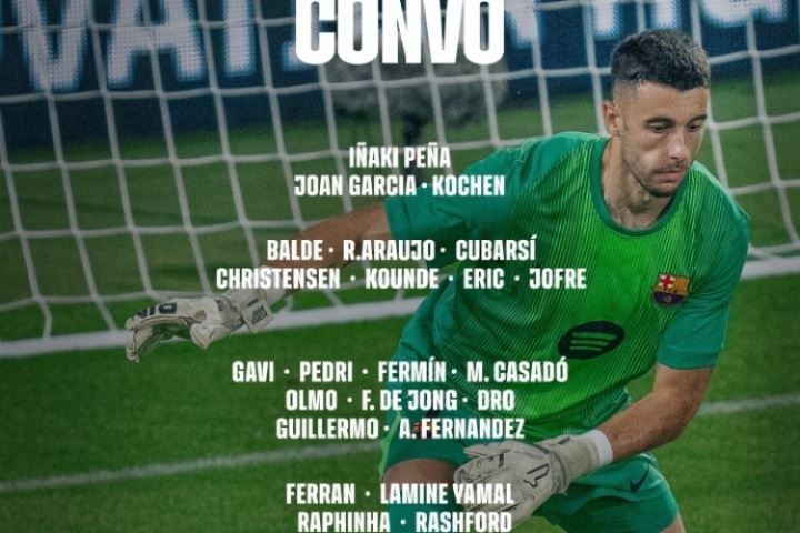 巴萨公布西甲首轮大名单:加西亚、拉什福德在列,无什琴斯尼莱万