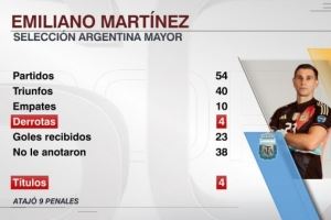 据ESPN统计,大马丁为阿根廷国家队出战54场比赛,仅输掉其中4场。